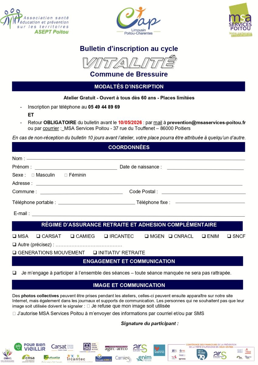 INSCRIPTION : Par téléphone et bulletin (obligatoire)