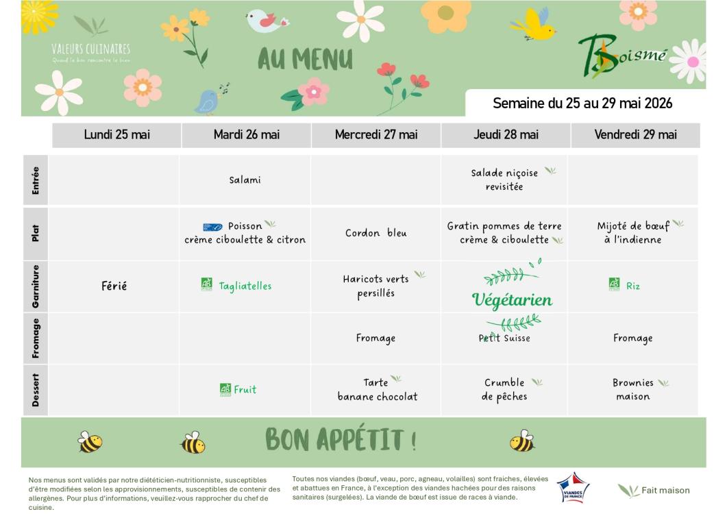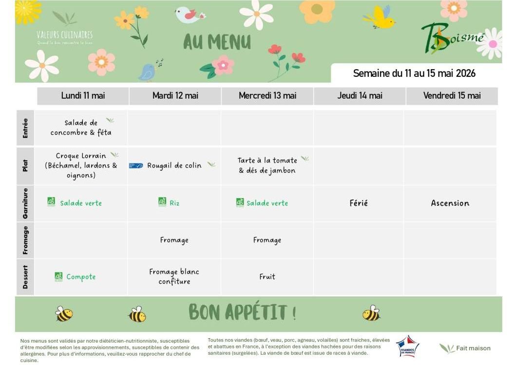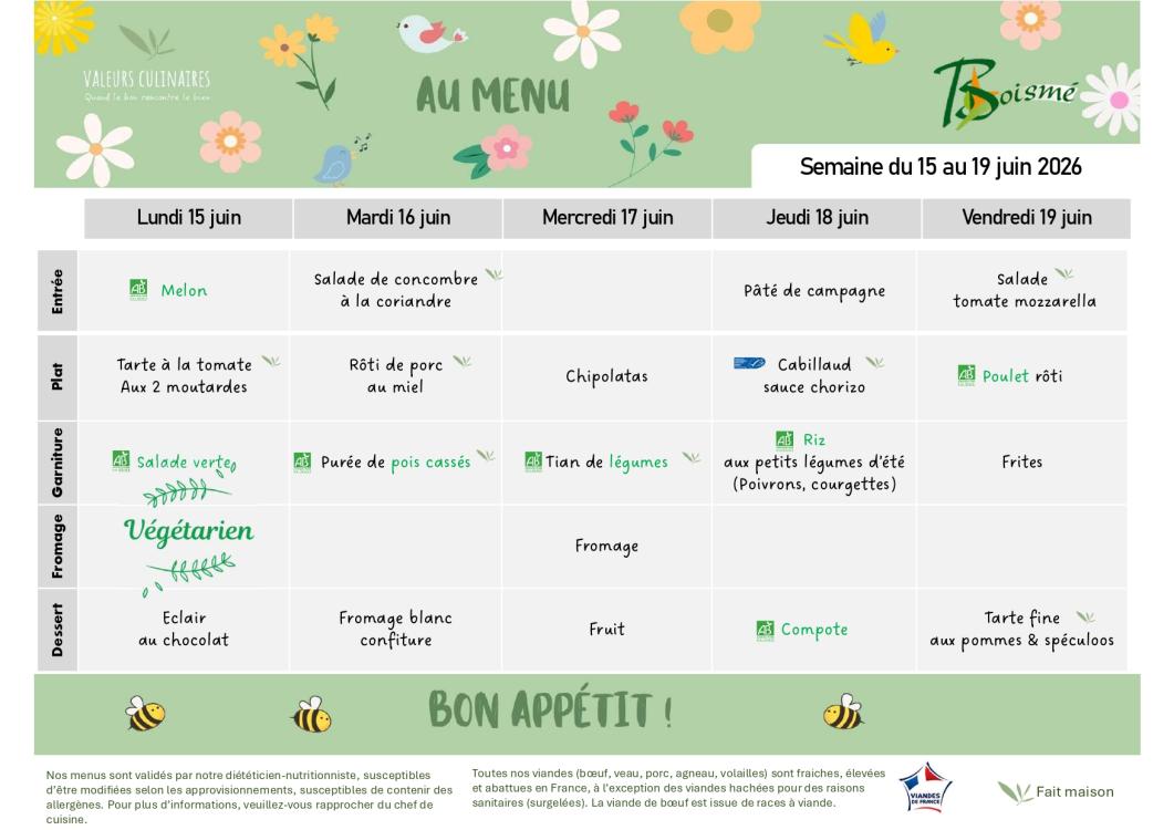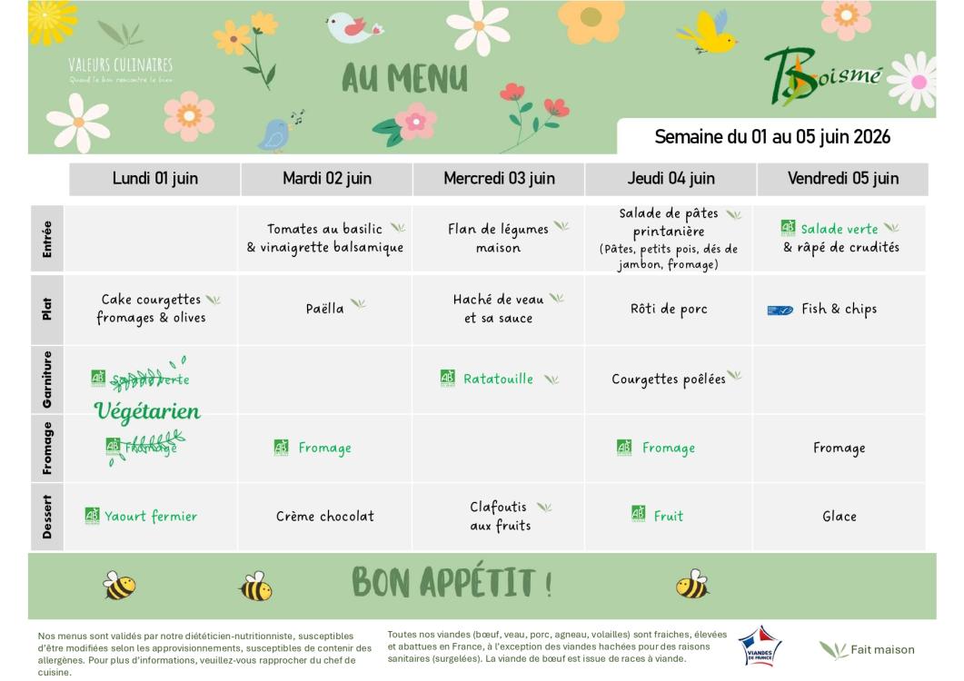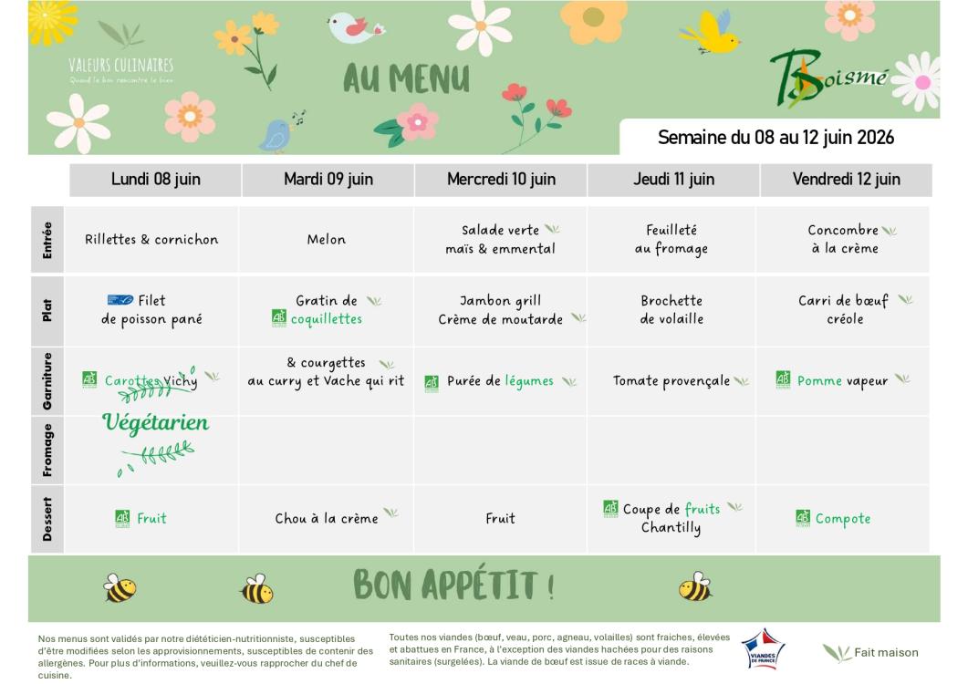 Menu cantine du 20 avril 2026 au 03 juillet 2026.